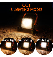 The Portable 50W Solar LED Floodlight is the perfect choice for sustainable, powerful, and versatile lighting. Designed for outdoor use, it combines 3CCT technology (warm, neutral, and cool white), 1500 lumens of brightness, and Lumileds SMD2835 LEDs to deliver efficient, high-quality illumination.