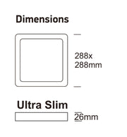Dimensions (mm): 288x288mm H26mm